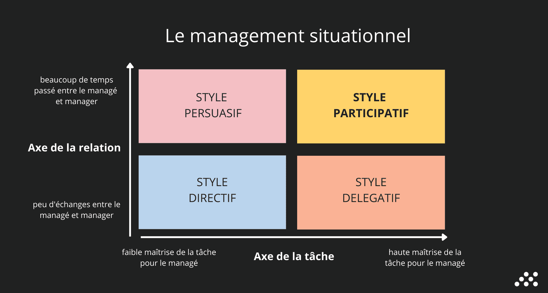 As soon as an employee gains experience and begins to understand their company’s DNA well, they will be more inclined to propose innovative and relevant actions for the company. In this case, it may be useful for their manager to adopt a participative style, during which they take time to discuss with the employee, listen, and above all take the employee’s suggestions into account. These two stakeholders would think together about the next high value-added actions, and their relationship, previously unbalanced, would evolve into a more equal one (or at least move in that direction).